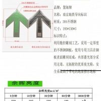 不锈钢蓄光消防导向标识是目前轨道交通必须安装的辅助型逃生疏散指示地标,在屏蔽门、站台地面、站内墙面以及楼梯出口要安装指向出口。这类标识目前规定必须以304不锈钢为基材,加入长余辉夜光粉制作。