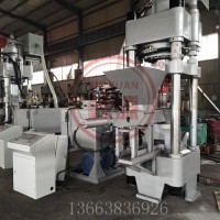 钢屑压块机液压系统的组成:液压系统由油箱、电机、油泵、组合阀、换向阀、压力表、液位计、高压胶管、温度计、回油滤油器、冷却器等组成。油液经油泵、管路、液压元件进入液压油缸,由液压元件控制油缸的动作,实现挤压回复出饼等动作,系统压力油流阀调定,全自动机械动作由电脑控制,自动运行,主缸将饼块压实后压力继电器发讯,然后执行下一个动作。油箱内油温由冷却器调节,油温过高时,开大阀门,加大水量和循环速度,强行冷却,反之,关闭阀门。