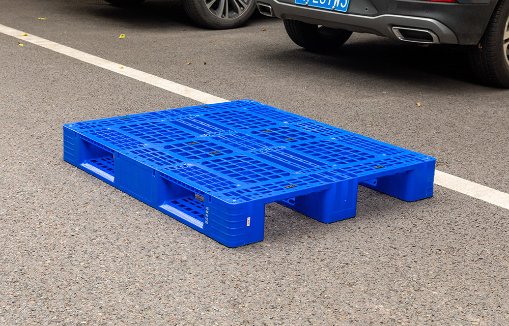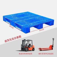 产品四向进叉设计,机动叉车四向进叉,手动叉车开口位进叉,操作方便。托盘采用网格状镂空加强筋设计,结构性强,提高载重抗压能力的同时且具备通防潮的作用。