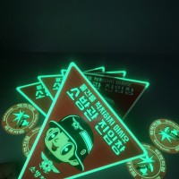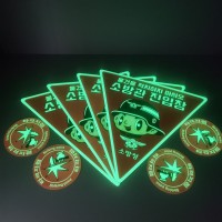 夜光PVC发光板,地贴是一种短暂吸光后在黑暗环境中能持续发光的硬质PVC材料,可用丝网印s、喷绘、Uv打印加油墨再加工,在广告宣传,标识中有着广泛的应用。传统丝印夜光板存在一系列问题,如夜光粉易刮落,难以长时间维持:夜光板表面不够细腻,有颗粒感;着色力差等。而我司新型夜光板是将夜光粉和pvc树脂混合后经过一系列工序成型,表面细腻光滑,发光强度高,油墨着色好且夜光粉无法被刮落。