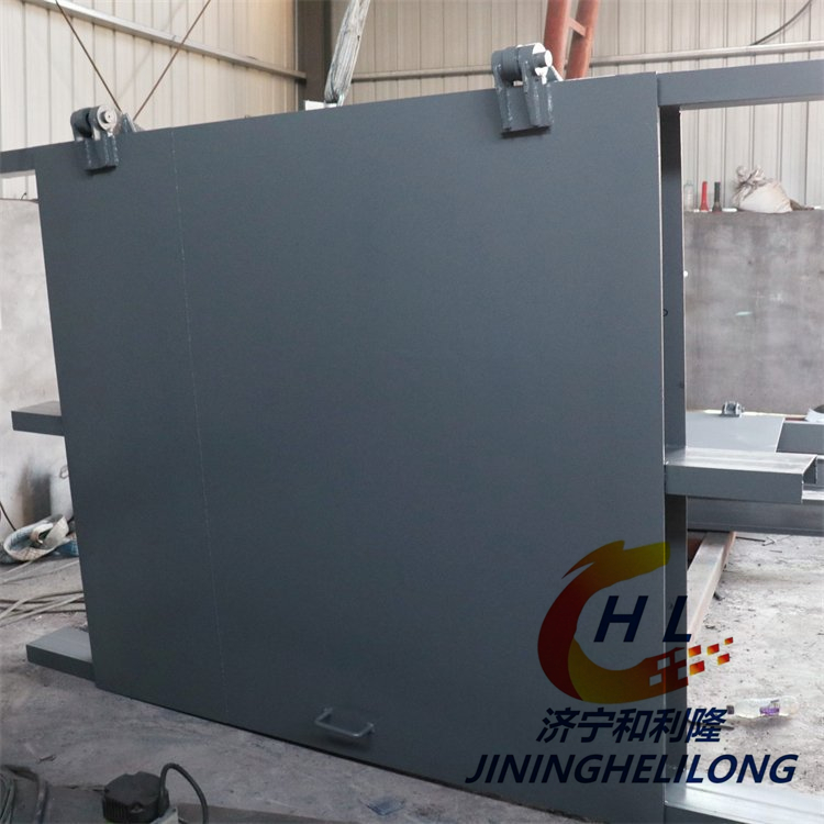 防水密闭门的门扇为平钢板、井字筋板、圈梁等焊接而成,门框是槽钢和工字钢组合框架式结构,拉紧装置为楔形滑块楔紧,门枢采用滚动轴承支撑。