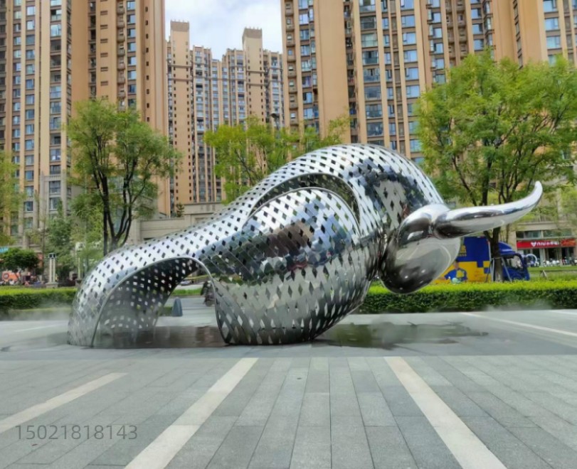 大环境小景观 不锈钢牛雕塑 抽象镜面牛定制