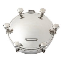 该压力型人孔主要应用在食品,啤酒,饮料,制药等工业领域压力容器上. 外开式人孔盖子 带法兰式窥视镜 由任式窥视镜 内表面:Ra0.8μm-0.5μm 外表面:镜面抛光理、喷砂理、亚光理 垫圈:硅胶(SIL),氟橡胶(FKM),三元乙丙橡胶(EPDM),四氟乙烯(PTFE) 高度:100(可根据客户要求改变) 材质:304/316L 常用规格:Φ200mm---Φ2000mm
