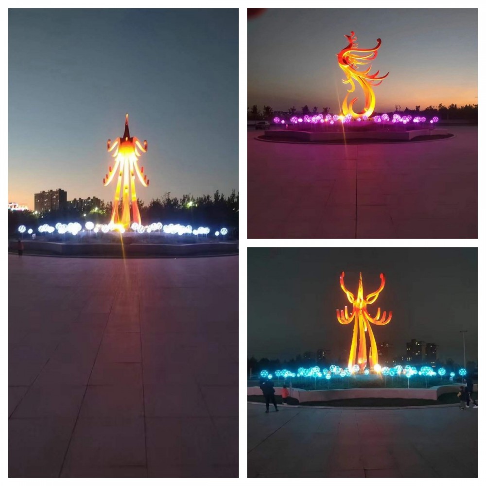 广场大型灯光凤凰雕塑 不锈钢雕塑摆件
