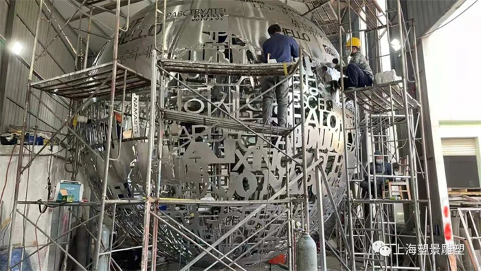 安装完成后,地球仪安装了自动旋转电机,地球仪可以旋转,增加了动态,使雕塑大大增加了观赏。