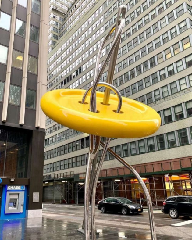 步行街纽扣不锈钢雕塑 穿针引线扣子雕塑定制