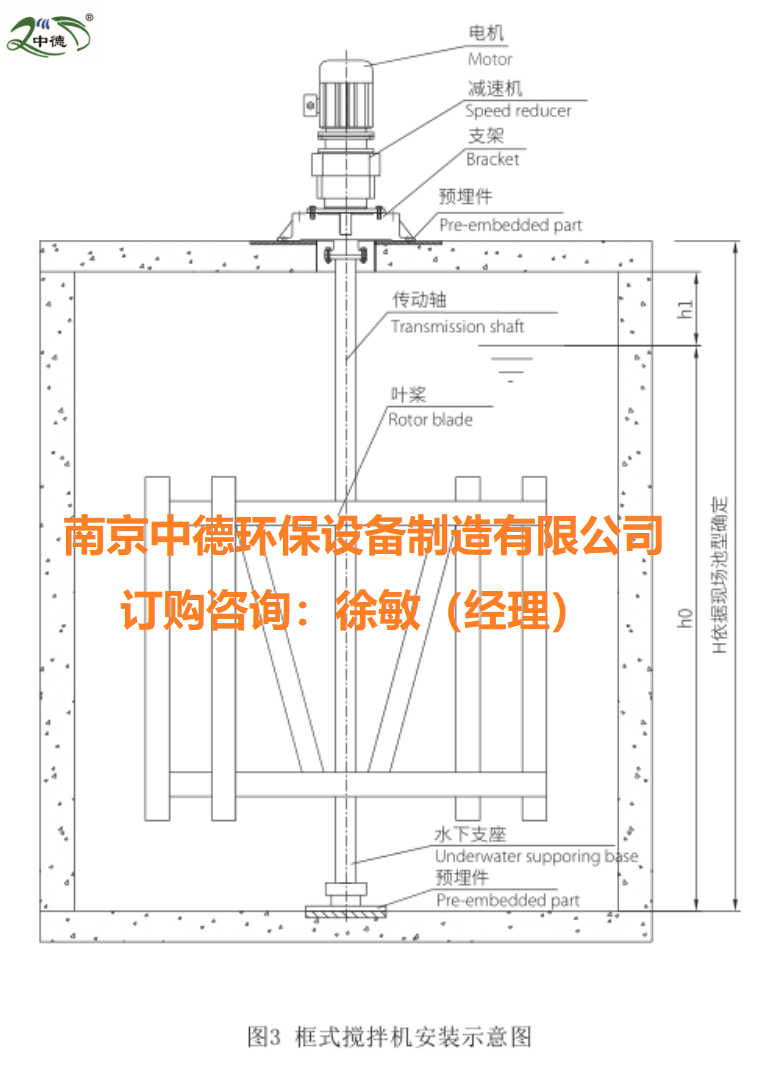JBK型框式搅拌机由电机、减速机、机架、搅拌轴、框桨、电控箱(工作桥用户自备)等组成。