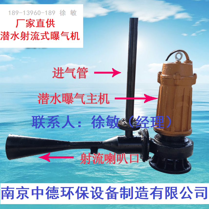 潜水射流曝机通 过潜水泵产生的水流经过喷嘴形成高速水流,在喷嘴周围形成负压吸入空,经混合室与水流混合,在喇叭形的扩散管内产生水混合流,高速喷射而出,夹带许多 泡的水流在较大面积和深度的水域内涡旋搅拌,完成曝,并且其轴功率不随潜没深度的变化而变化,进量可以调节。正因为如此,潜水射流曝机可以在水位变化较大的池中应用。