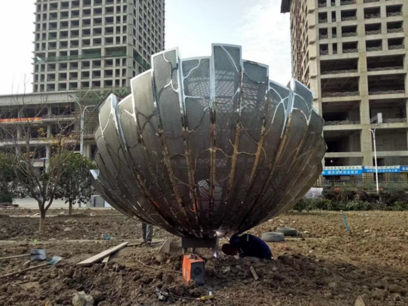 在工艺上,可抛光成镜面,可打磨成砂光,还可上色。其中,镜面效果是其它雕塑不具备的,被不锈钢雕塑厂家制作成平面或者扭曲的镜面效果后,光线对它的作用被环境反射削弱,魔力般隐形于空间环境中。因此,不同于XXX亚光材料的雕塑,它能够呈现不同视角、不同光线、不同环境下的多种视觉感触。这种不定性和偶然性,成为作品自身升华。