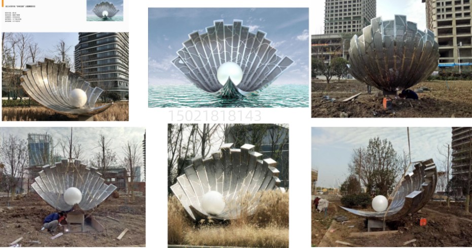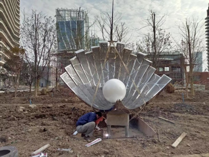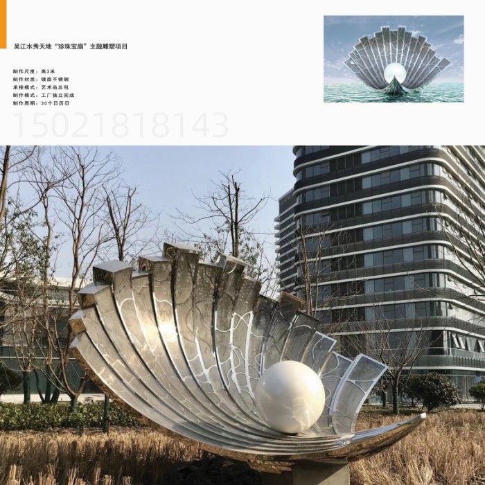 城市景观雕塑 镜面不锈钢雕塑 珍珠宝扇雕塑安装图