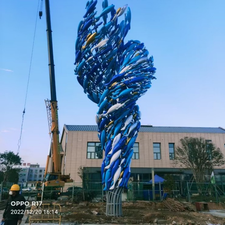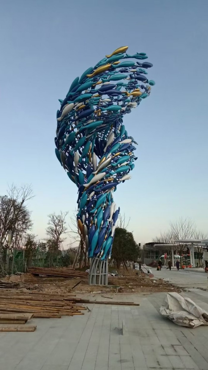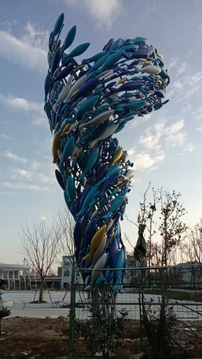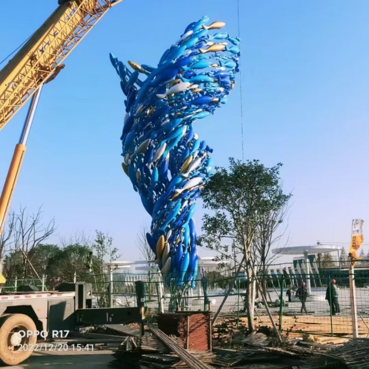 路口龙卷鱼群雕塑 彩绘不锈钢鱼雕塑摆件