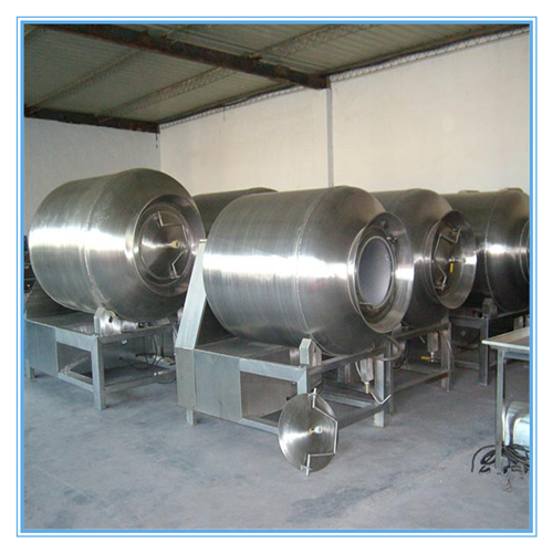 滚揉机是利用物理冲击的原理,让肉在滚筒内上下翻动,相互撞击、摔打、达到按摩、腌渍作用。滚揉机可以使肉均匀的吸收腌渍,可以提高肉的结着力及产品的弹性;可以提高产品的口感及断面效果;可以增强保水性,增加出品率;可以改善产品的内部结构,节能。整机采用不锈钢制造,结构紧凑,滚筒两端均采用旋压式封帽结构,的增加滚筒内的摔打空间,使滚揉产品的效果均匀,噪音小,性能可靠,操作简便,使用效率更高