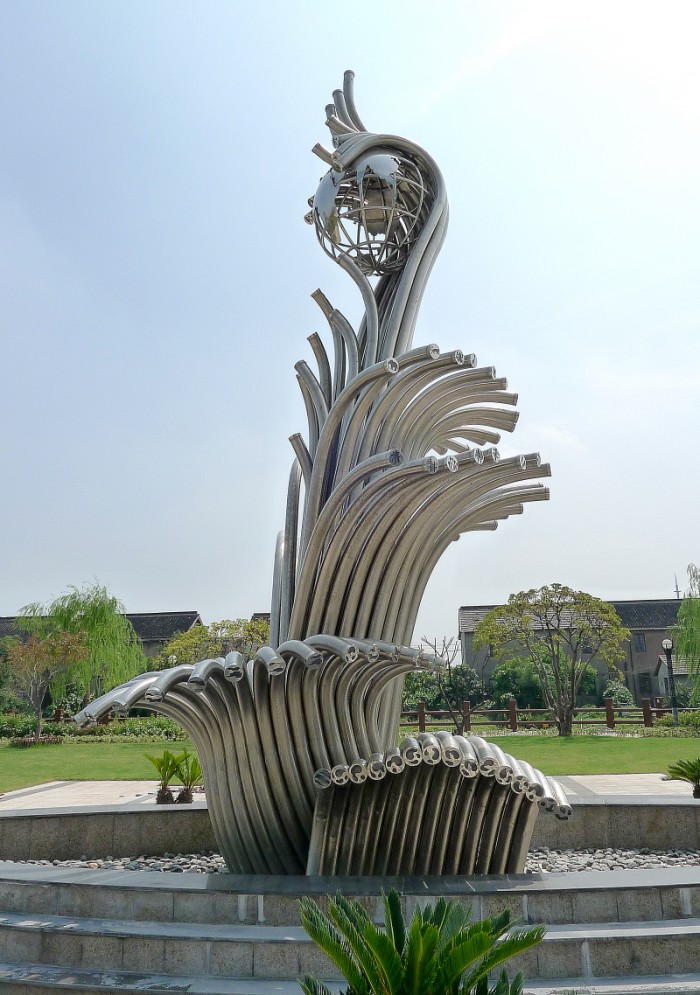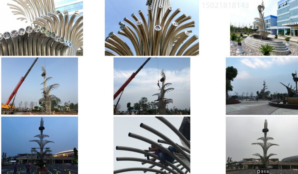 巨浪雕塑采用不锈钢管焊接拼装成型、外形似浪花飞起,起名巨浪:雕塑本身的颜色是银白色,具有光泽,可以根据所需要选择喷不同颜色的漆料,表面理比较的灵活与方便。