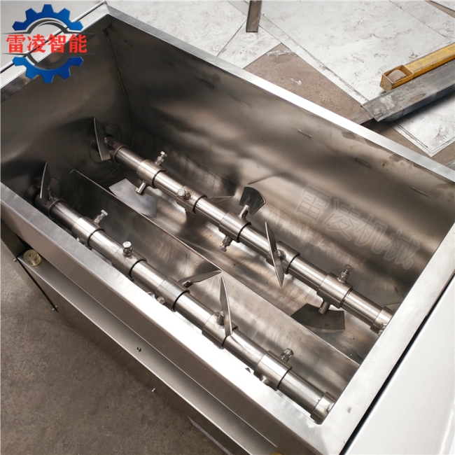拌馅机(食品加工机械厂家Tel:150*5447-0262)主要用于搅拌馅状物料,也可用于其它散状物料粉状,酱状物品的搅拌和混合。拌馅机是用与混料的理想设备,效率高,便于操作,是制作干肠类产品、料状泥状混合肠类产品、丸类产品的理想设备,同时也是生产水饺、馄饨类面食产品的可选设备。