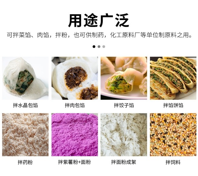 我公司生产的拌馅机混料速度快,操作简单,方便自如,自动出料,劳动强度更低,旋齿排列形式使物料混合更均匀,单次装料理更多。独的的三层密封保护设备使用寿命更长,清洗更方便。对料状,粉状,泥状,糊状,浆状物皆有很好的适应性和混合效果。