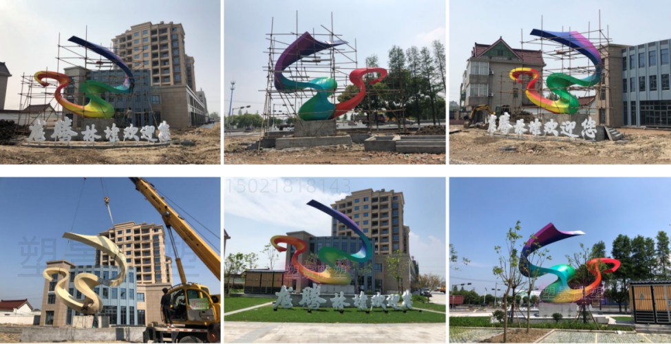 平湖市林埭镇入口彩带雕塑 不锈钢飘带雕塑安装