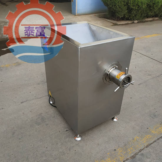 绞肉机为系列产品;工作时利用转动的切刀刃和孔板上孔眼刃形成的剪切作用将原料肉切碎,并在螺杆挤压力的作用下,将原料不断排出机外。可根据物料性质和加工要求的不同,配置相应的刀具和孔板,即可加工出不同尺寸的颗粒,以满足下道工序的工艺要求。