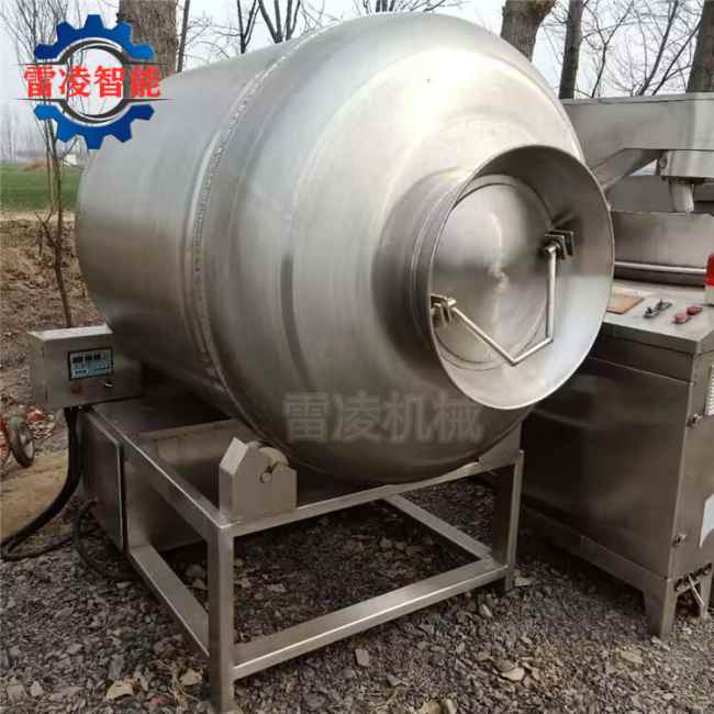 2.牛肉腌制机:腌制机是在真空状态下,利用物理冲击的原理,让肉在滚筒内上下翻动,相互撞击、摔打、达到腌渍的作用,可以使肉均匀的吸收腌渍,提高肉的结着力及产品的弹性;本机具有肺呼吸功能,让产品在滚筒内做膨胀、缩小的往复运动,改善了肉组织的结构,提高了切面效果,增加了出品率。可以增强保水性,改善产品的内部结构。整机采用不锈钢制造,结构紧凑,滚筒两端均采用旋压式封帽结构,的增加滚筒内的摔打空间,使滚揉产品的效果均匀,噪音小,性能可靠,操作简便,使用效率更高。