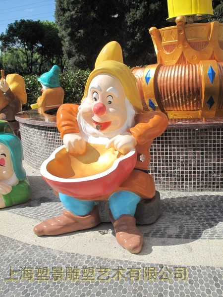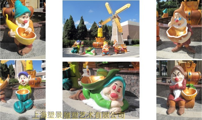 一群可爱的白雪公主-俏皮小矮人雕塑 彩绘童话人物雕塑图