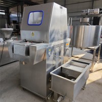 盐水注射机指的是将盐水注入到肉中,使得肉能够被充分的腌制,而注入所配制的水溶液的肉块,能够使得肉质变得嫩化,更加的松软,从而提高了肉制品它的出品率以及品味。盐水注射机,顾名思义是将淀粉,盐水,大豆蛋白或者是XXX的辅助材料注入到肉内部,使得其被充分的腌制,依靠这种自动化的技术利用机械装置将腌制品通过注射的形式注射在产品内部,使得其在全自动盐水注射机内部均匀快速的达到腌制,保持其内部营养调味,强化口感的目的,而根据所需要的口感,利用不同的工艺,调节速度,距离,压肉板间距,从而将腌制的调味品均匀地注入到肉内部,达到理想的注射效果。