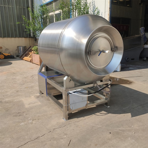 滚揉机的工作原理是指在真空的状态下,利用物理冲击原理,让肉块或肉馅在滚筒内上下翻动,相互撞击,摔打,从而达到按摩、腌渍作用。腌渍液被肉充分地吸收,增强肉的结合力及弹性,提高产品的口感及断面效果;可以增强保水性,增加出品率;可以改善产品的内部结构。