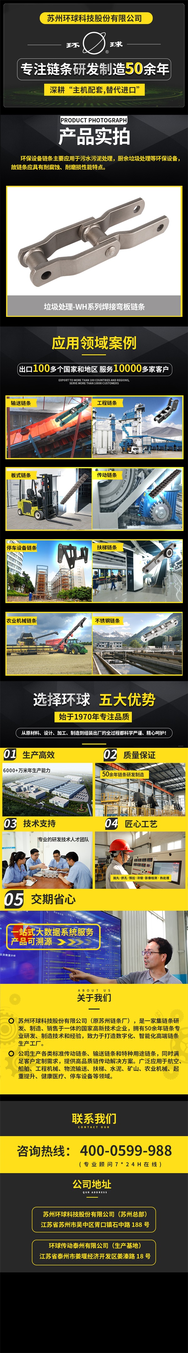 公司生产各类传动链、输送链、曳引链和特种用途链条,满足客户定制。广泛应用于工程机械、物流输送、自动扶梯、水泥、矿山、农业机械、起重提升、健康医疗、停车设备等领域。
