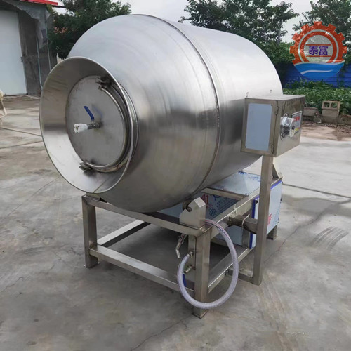3、加速蛋白质的提取和溶解。盐溶性蛋白的提取是滚揉的重要目的,肌肉纤维中的蛋白质-盐溶性蛋白(主要指肌球蛋白)具有很强的保水性和黏结性,只有将它们提取出来,才能发挥作用。尽管我们在盐水中加入很多盐类,提供了一定离子强度,但只是极少数的小分子蛋白溶出,而多数蛋白分子只是在纤维中溶解,但不会自动渗透肉体。通过滚揉才能快速将盐溶性蛋白提取出来(食品加工机械厂家Tel:138*5448-1138)。