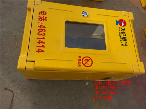组合一位SMC玻璃钢燃表箱的箱体正面装有箱门,箱门上设有观察孔,观察孔装有注塑而成的聚 碳有机玻璃块或玻璃块,观察孔专为方便插卡换电池设计,根据实际需要可生产为活动滑块或固定观察孔。箱门与箱体的连接采用整体的合页与锁鼻法兰,配备燃 专用锁,箱体上设有进管安装孔和出管安装孔,箱体不设后盖板,进管安装孔和出管安装孔在燃表箱施工现场临时开设或按客户设计好的位置出厂前进行 开孔。表箱制作完成后,根据客户需要,在适当位置喷涂相关标识及电话等。