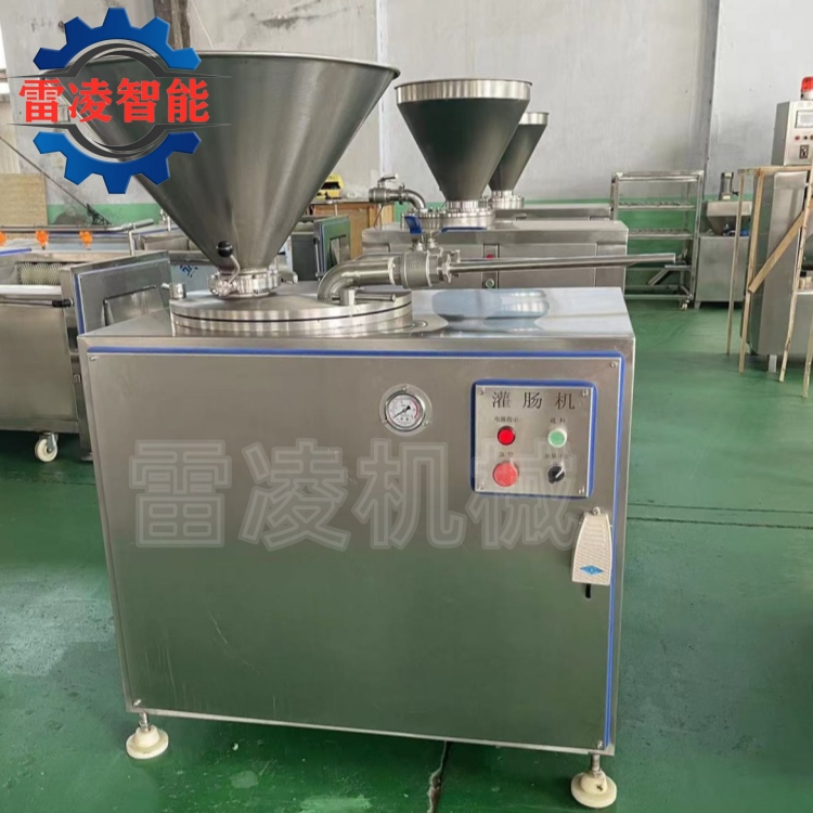 不知道大家是否注意过,平时我们经常吃的各种小台烤、香肠、腊肠、红肠等肠类食品,在外面都有一层薄薄的肠衣。这不得不提到本公司生产的全自动灌肠机啦!我们公司专业制作肉制品生产线全套加工设备,单说灌肠机有多种类可供客户选择,不同的型号针对不同的产量,需要灌肠机的客户欢迎来电咨询哦~(食品加工机械厂家Tel:150*5447-0262)
