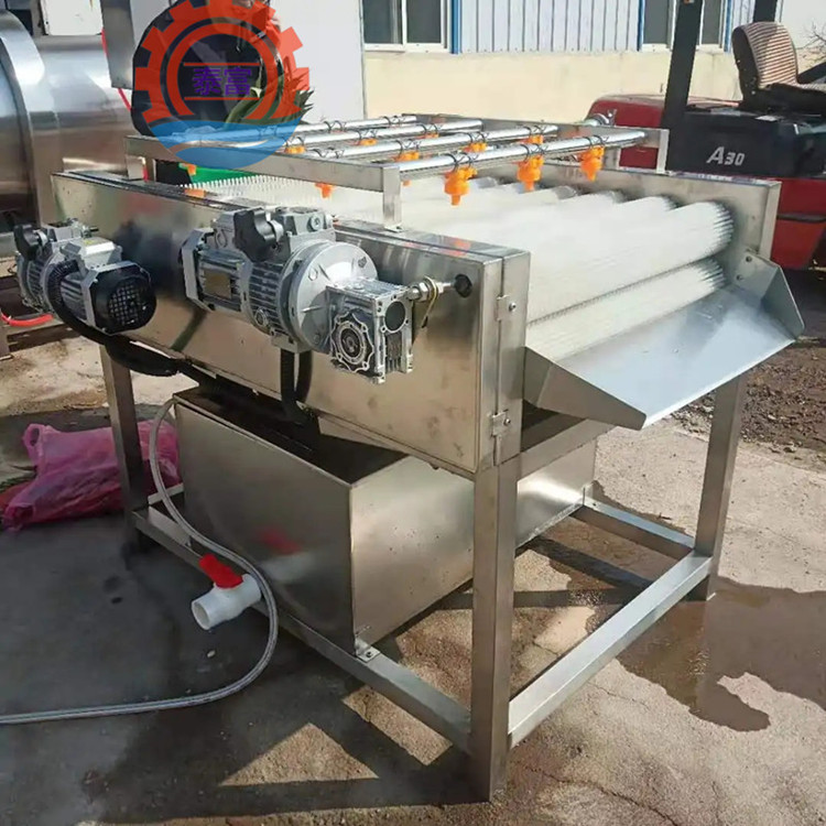 粽叶清洗机 循环水粽叶刷洗机,采用双层毛刷刷洗的工作方式,将粽叶清洗干净,适用于箬竹叶,芦苇叶,槲树叶等。粽叶清洗机由上下二排毛刷辊组成,刷辊转动时,粽叶在两排毛刷之间运动, 对粽叶的两面同时进行滚刷,使粽叶达到清洗的目的。粽叶清洗机 循环水粽叶刷洗机设备带有水循环系统,清洗完的水经过滤再经水泵抽到上方喷淋管进行二次被利用,以节约用水。操作工将粽叶喂入设备,进入上、下二层毛刷辊洗刷,由于*组毛刷与后面毛刷有一定的速差,清洗时粽叶后端形成一定的拉力,从而模拟了人的动作,达到一次完成粽叶两面清洗的目的,大大提高了清洗效率,降低人工成本。