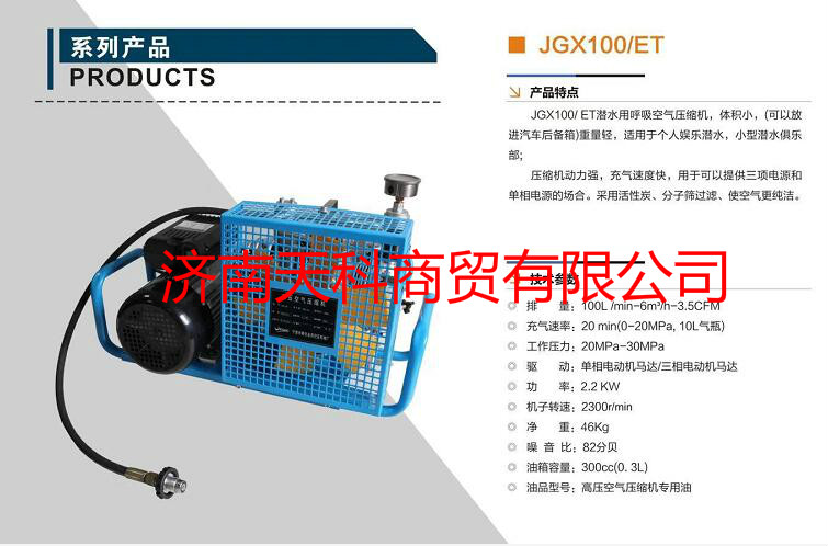 JGX100/ET消防潜水用呼吸空压缩机,体积小(可以放进汽车后备箱)重量轻,适用于空呼吸器瓶充,个人潜水娱乐。