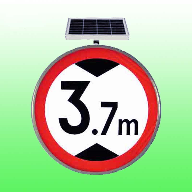 太阳能限高标志牌是以多晶硅太阳能板、蓄电池组件为能源,它利用太阳能板将白的阳光转换成电能贮存于蓄电池中,当夜幕降临、视线昏暗或雨雾等视线不佳情况下,通过LED内发亮光来点亮清晰图文,传达交通信息。