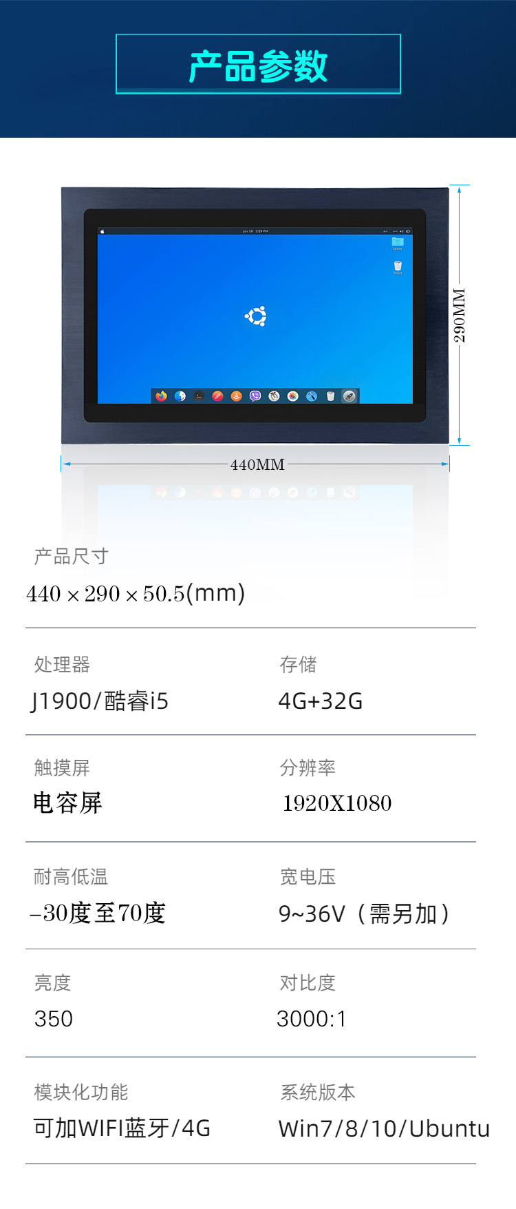 IP65等级电容触摸屏15寸15.6寸工控一体机