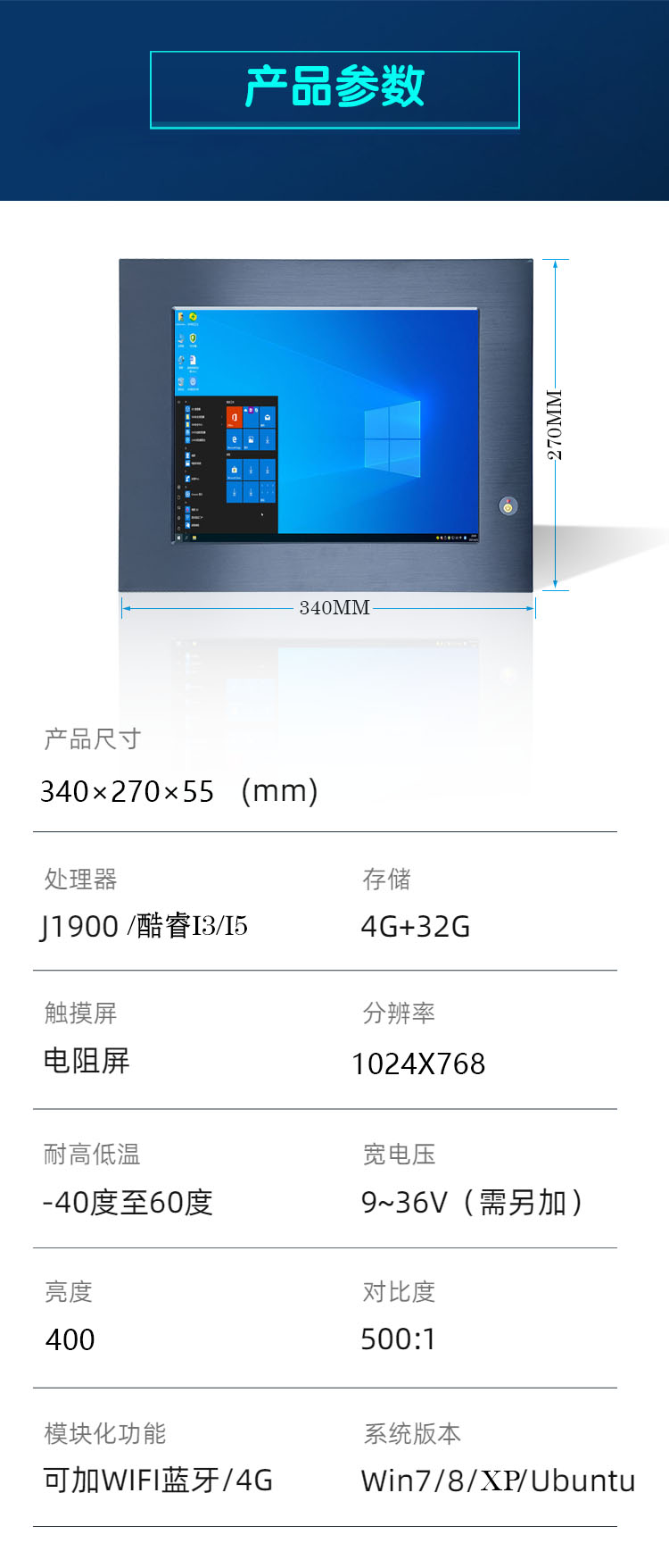 X86架构宽电压12.1寸嵌入式工业平板电脑厂家