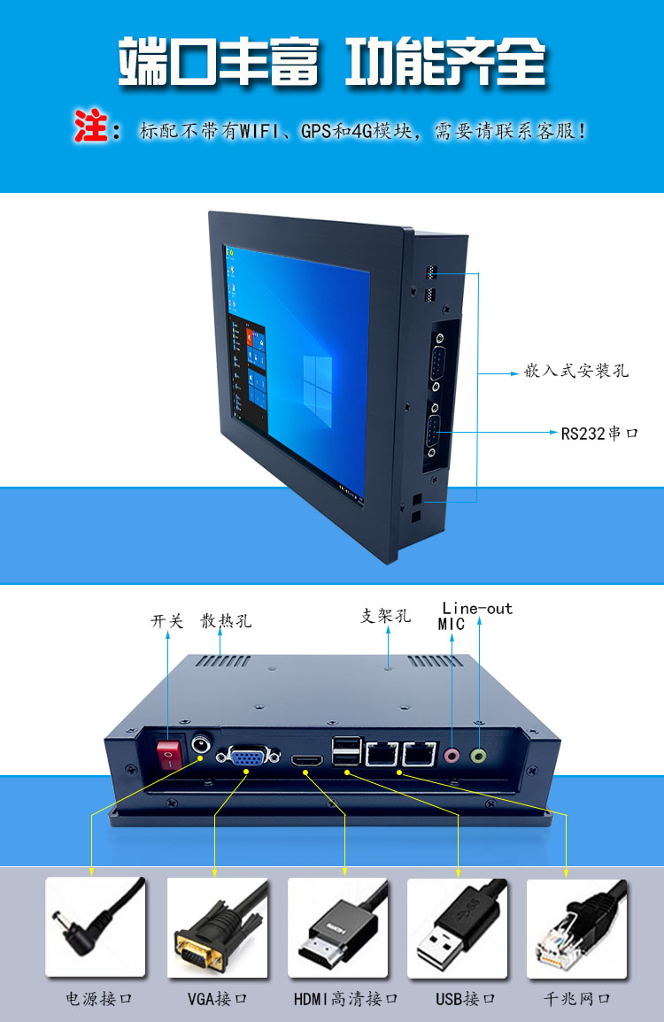 win7/XP嵌入式8寸工业平板电脑双网口