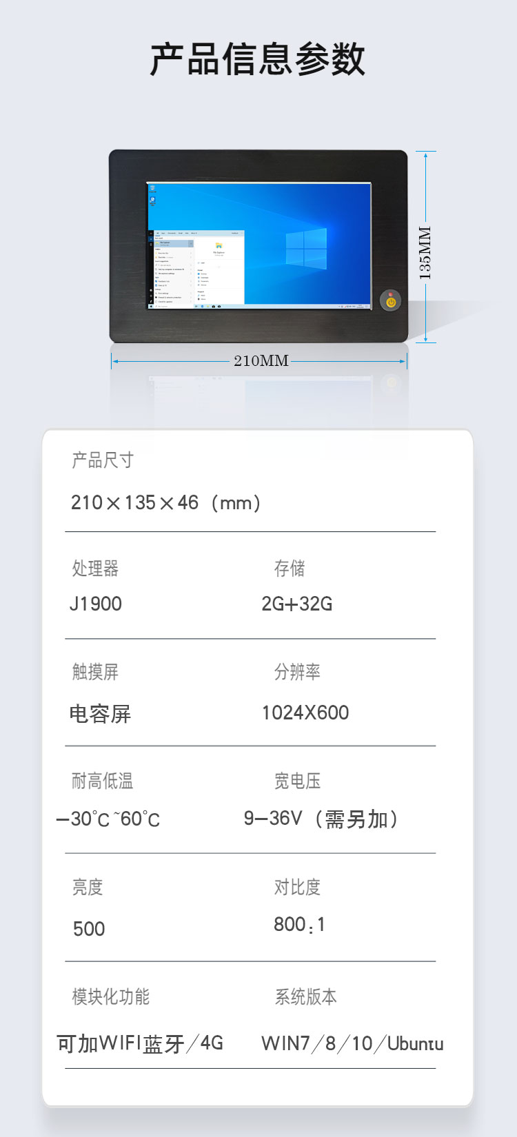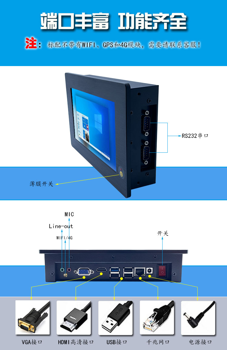 多点触电容屏嵌入式7寸工业平板电脑win8