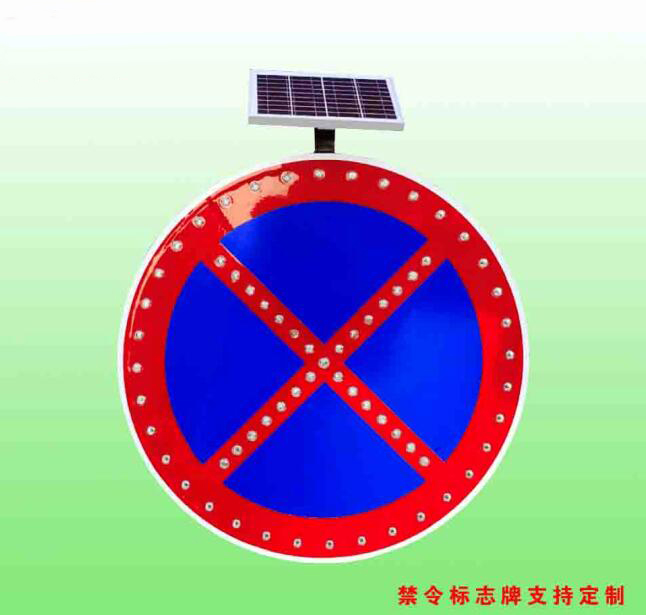 太阳能禁停标志牌是以多晶硅太阳能板、蓄电池组件为能源,它利用太阳能板将白的阳光转换成电能贮存于蓄电池中,当夜幕降临、视线昏暗或雨雾等视线不佳情况下,限速标志牌上的发光二极管自动启动闪烁,通过LED发出亮光来勾画图案轮廓,传达交通信息。