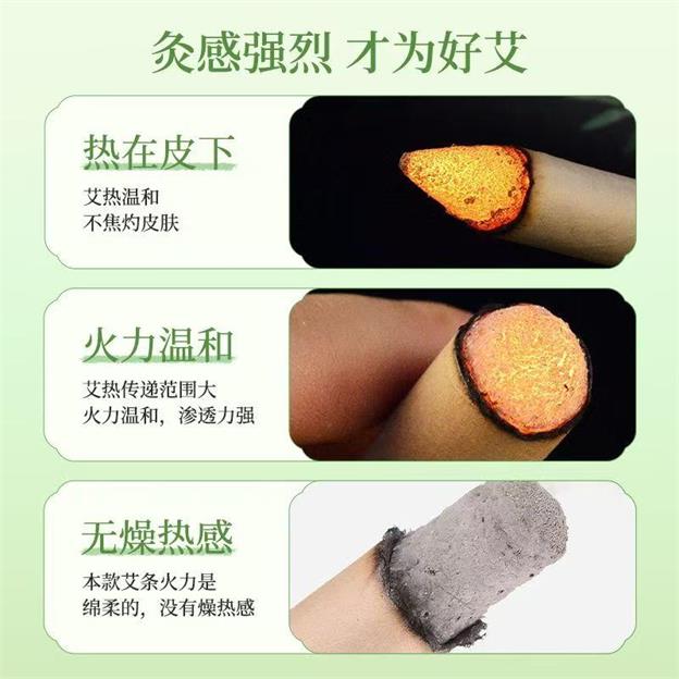 选用大别山陈年艾叶,灸感更好,艾绒细腻,蓬松软易成型;热在皮下,艾热温和,不焦灼皮肤;艾热传递范围大,火力温和,没有燥热感。