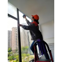 核心服务:玻璃幕墙清洗、办公室隔断玻璃清洁、学校教室玻璃窗擦洗,同步清理窗框胶痕与纱窗。