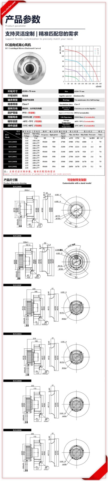 斯托姆280mm镀锌钢板无刷外转子后向式机静音中压工业排扇