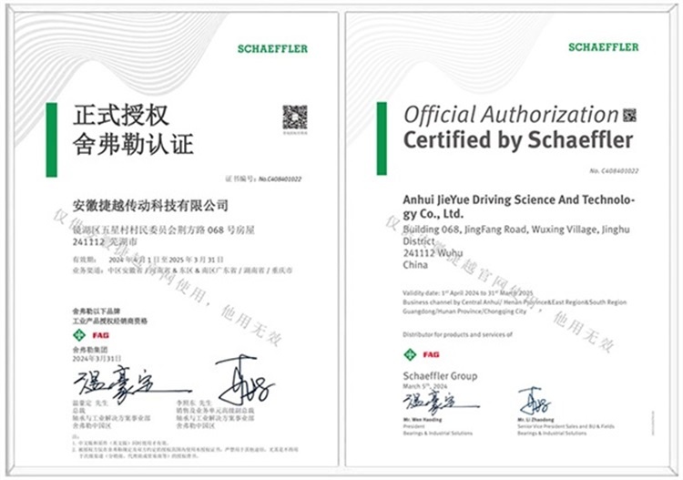 安徽捷越传动科技有限公司是舍弗勒集团在安徽地区的授权经销商,是一家专业致力于FAG/INA进口轴承在中国水泥行业、钢铁行业及铜加工行业设备的轴承销售和技术服务的公司。在充分了解客户的设备运转使用情况下,公司结合市场状况集中为行业客户备货。其中立磨磨辊轴承、减速机轴承以及制砂机、破碎机、振动筛等砂石骨料设备的常用轴承都备有充足货源。