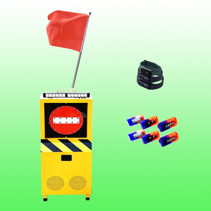 1.雷达模块主机:雷达测距1-200米、宽度:1-20米,测速范围:5-280km/h可更具实际应用场景设定。 2.高音强声喇叭200瓦 声压级:148DB。3.摇旗方式:左右摇旗提示视觉动态提示效果。4.联动肩灯/手环有效间距:300米左右。