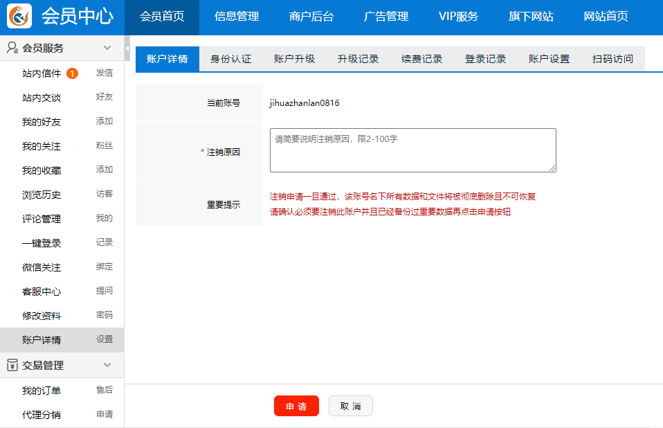 黔优网(Qianu.Com)上怎么样注销自己注册的公司及账号信息?
