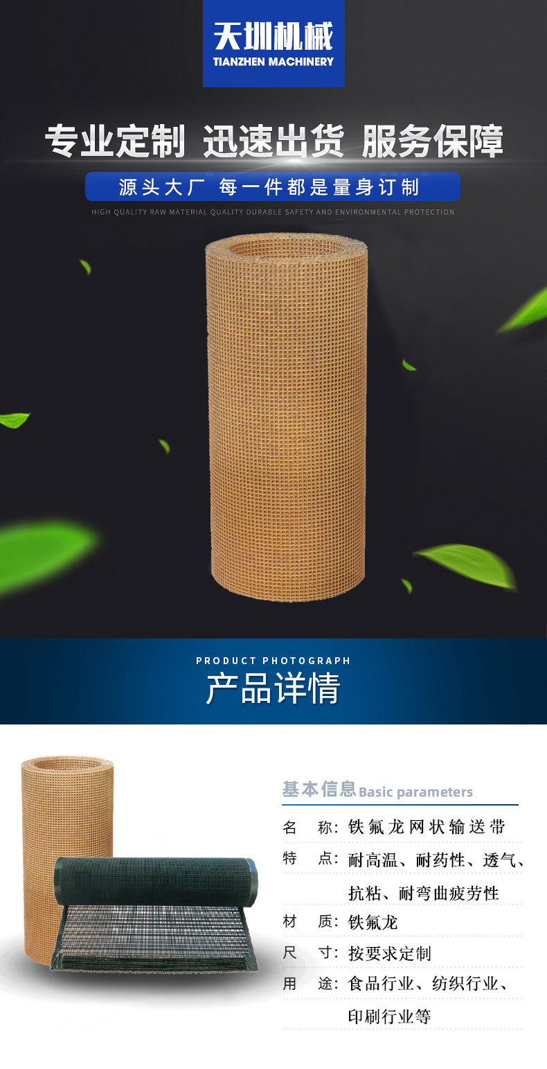铁氟龙特氟龙输送带(网带、布带)订制说明:
