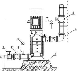 6、用于有吸程场合,进水管端应装有底阀,并且进口管路不应有过多弯道。同时不得有漏水、漏现象存在。