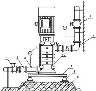 5 | 闸阀 | 6 | 止回阀 | 7 | 压力表 | 8 | 水泥台座 | 6 | 泵 | 7 | 联接板 | 8 | JGD型隔振器 | 9 | 水泥台座 | 10 | 泵 |