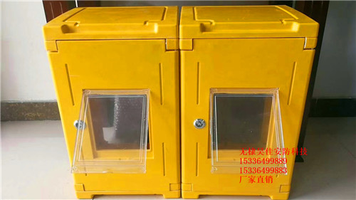 组合一位SMC玻璃钢燃表箱的箱体正面装有箱门,箱门上设有观察孔,观察孔装有注塑而成的聚 碳有机玻璃块或玻璃块,观察孔专为方便插卡换电池设计,根据实际需要可生产为活动滑块或固定观察孔。箱门与箱体的连接采用整体的合页与锁鼻法兰,配备燃 专用锁,箱体上设有进管安装孔和出管安装孔,箱体不设后盖板,进管安装孔和出管安装孔在燃表箱施工现场临时开设或按客户设计好的位置出厂前进行 开孔。表箱制作完成后,根据客户需要,在适当位置喷涂相关标识及电话等。