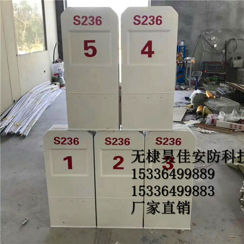 塑钢标志桩:材质是塑钢(PVC,聚氯乙烯)。材质轻便,弹性好,耐酸碱耐腐蚀,抗老化性能好。安装运输方便。