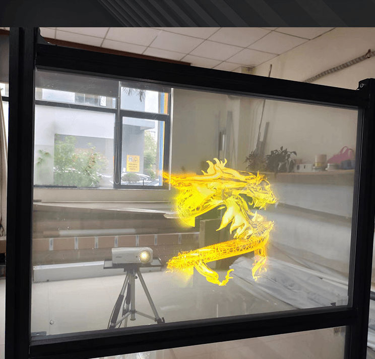 可以在空中提供动态显示,清晰显示,让观众通过投影胶片看到背后的景,并结合互动软件生成三维互动图像,让观众感觉自己仿佛置身于场景中