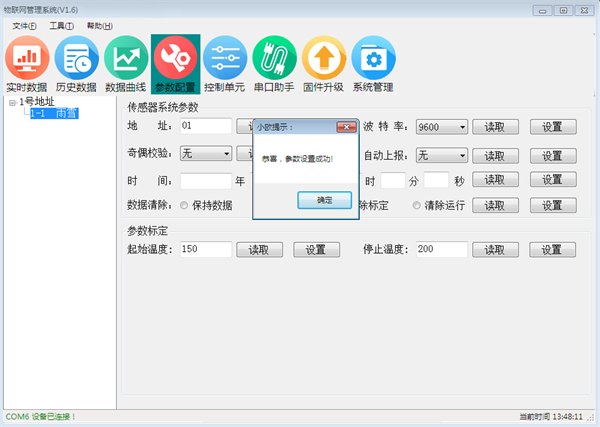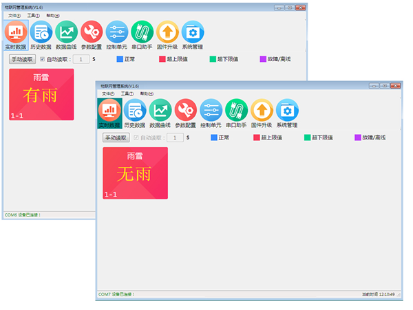 此配套软件的主要功能:查看实时数据、数据列表及实时曲线、设置上下限、校准数据、修改设备地址等功能。